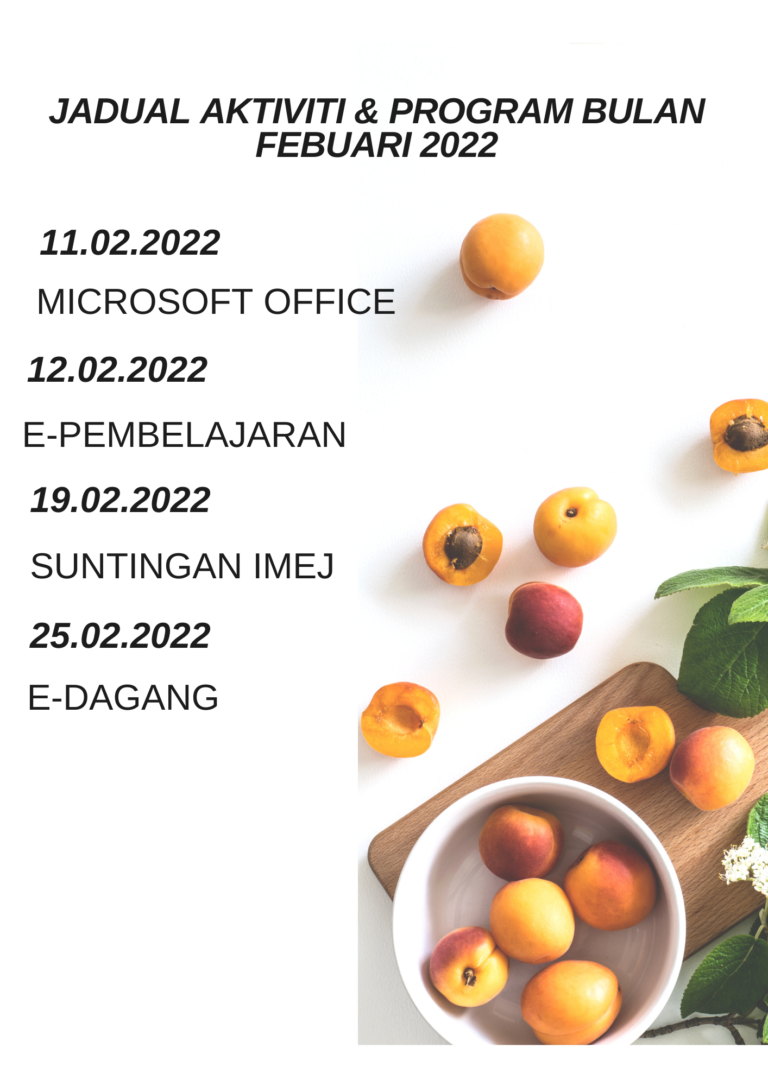 Tarikh:17 Febuari 2022 Masa:10.00 Pagi -12.00 Tengah hari Tempat:PeDI Felda Bukit Aping Barat Peserta: 1 Orang Tujuan : 1.Membantu peserta meluaskan pemasaran perniagaan secara dalam talian menggunakan platform Shopee. 2.Memberi pendedahan kepada peserta tentang teknologi maklumat dan komunikasi (ICT) terkini. Aktiviti […]