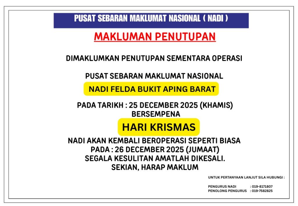 DECEMBER 2025 | NOTIS PENUTUPAN SEMENTARA SEMPENA HARI KRISMAS