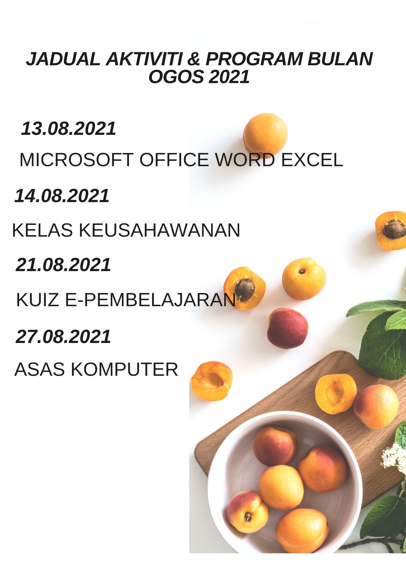 Tarikh : 3 Jun 2021 Masa : 11.00 pagi – 12.00 tengah hari Tempat : atas talian online Peserta : 1orang Tujuan : 1.Membantu peserta secara atas talian untuk menggunakan microsoft office word 2.Mengajar peserta belajar secara norma baharu […]